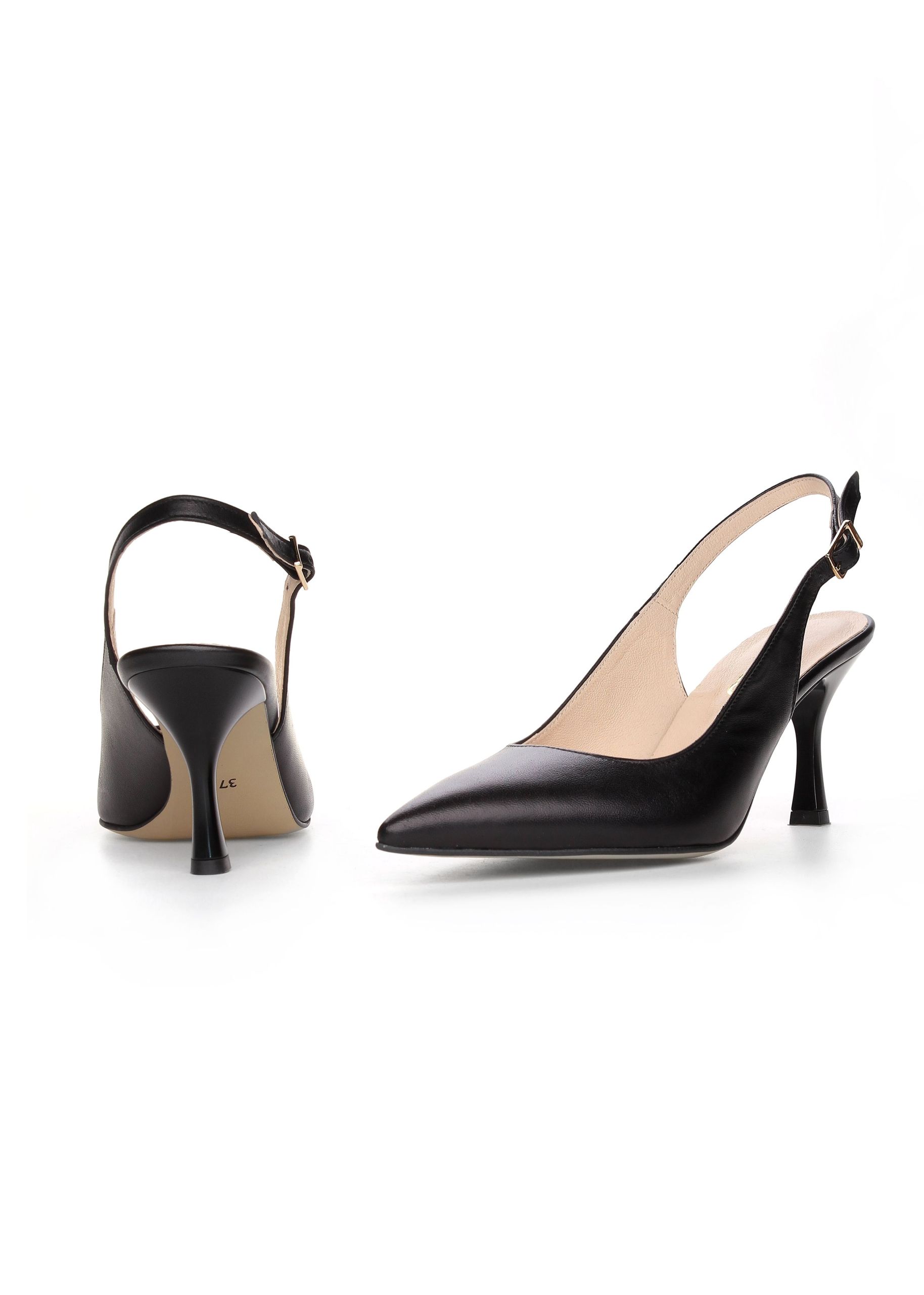 Postaw na wyrafinowany styl i zmysłową linię. Te czarne czółenka to idealne połączenie klasycznego fasonu z nowoczesnymi detalami. Dzięki subtelnemu połyskowi i odkrytej pięcie, model ten jest niezwykle lekki wizualnie, stanowiąc doskonałe dopełnienie eleganckich, wieczorowych oraz wizytowych stylizacji.