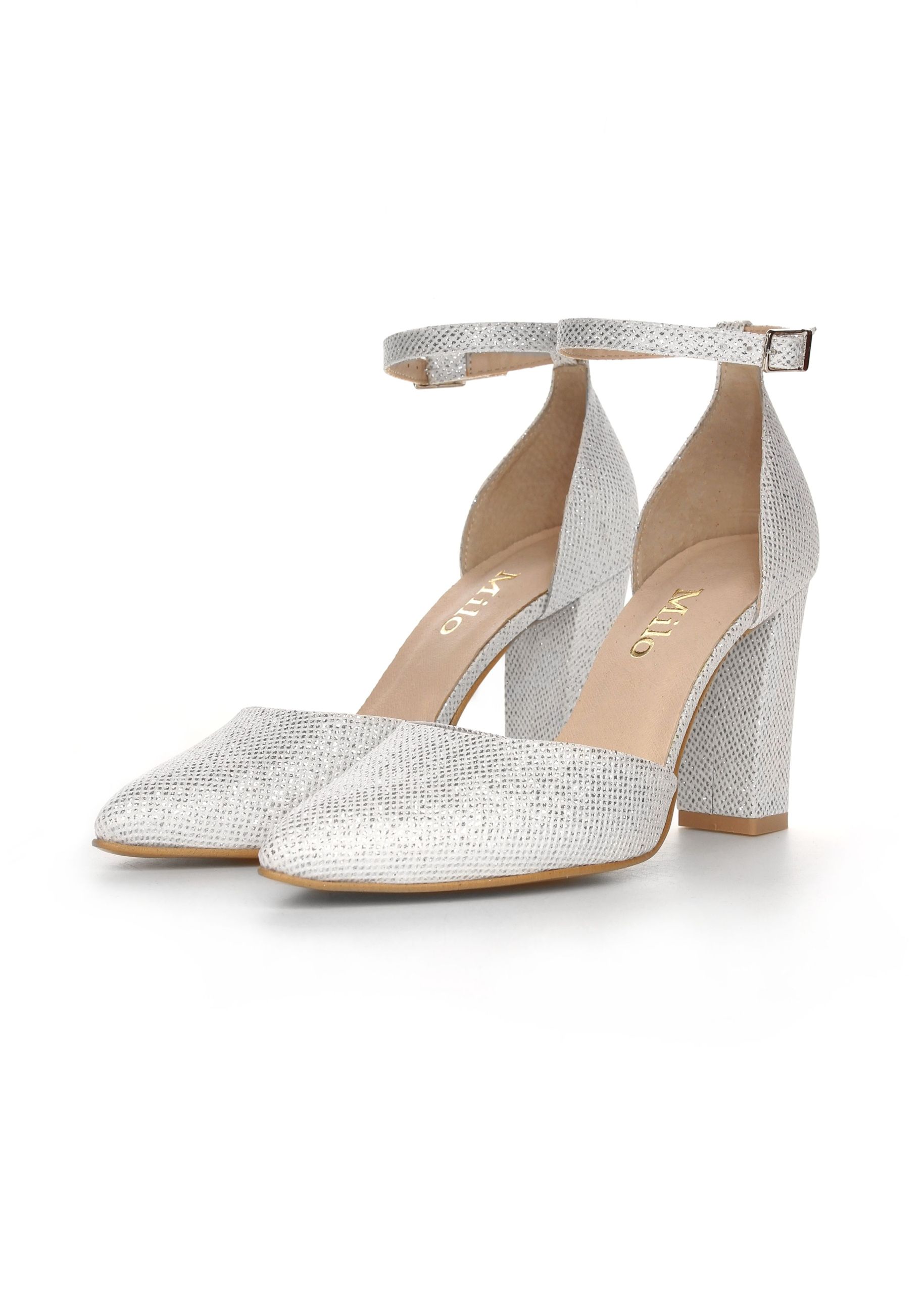 Zapięcie wokół Kostki: Delikatny, mieniący się pasek z klamerką pozwala na idealne dopasowanie buta, dbając o stabilizację pięty i kostki.