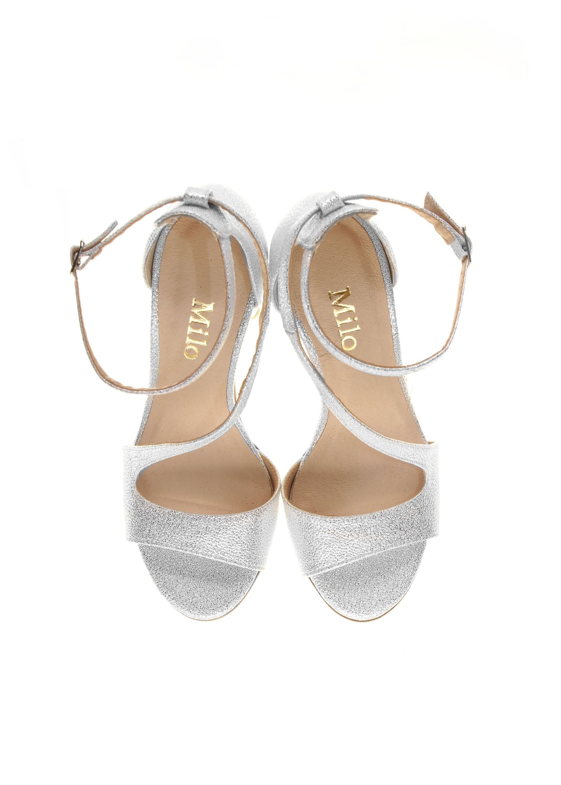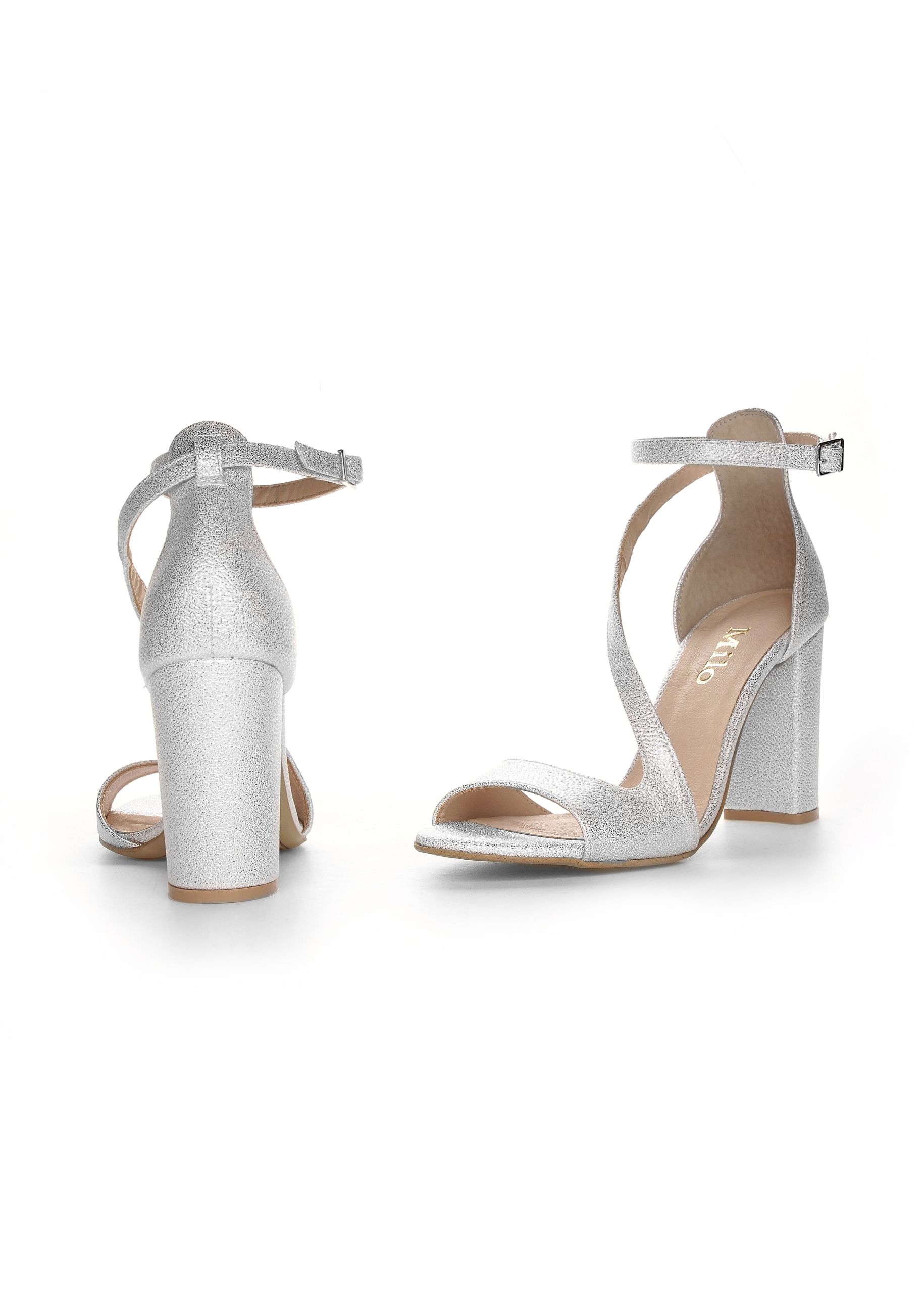 Dodaj swojej stylizacji blasku, obok którego nikt nie przejdzie obojętnie. Te wyjątkowe sandały w kolorze srebrnego kryształu to połączenie luksusowego designu z konstrukcją zapewniającą stabilność. Unikalna tekstura materiału sprawia, że buty efektownie mienią się w każdym świetle, stanowiąc biżuteryjny akcent Twojego stroju.